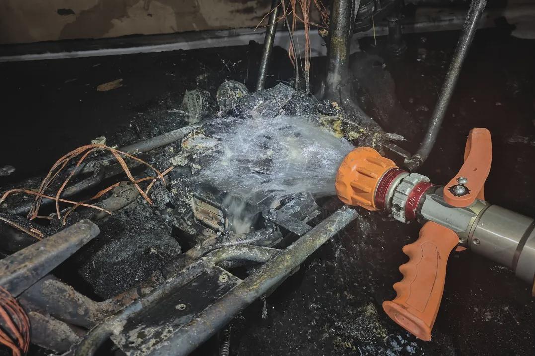 4月11日晚6时40分许,长宁消防接警称,茅台路一小区内发生火情。所幸事发时刚好有居民经过,在发火后第一时辰报警。消防东说念主员到场后将火填塞扑灭,事故并未形成东说念主员伤一火,但有2辆电动自行车被焚烧,另有部分电动自行车受到不同进程挫伤。